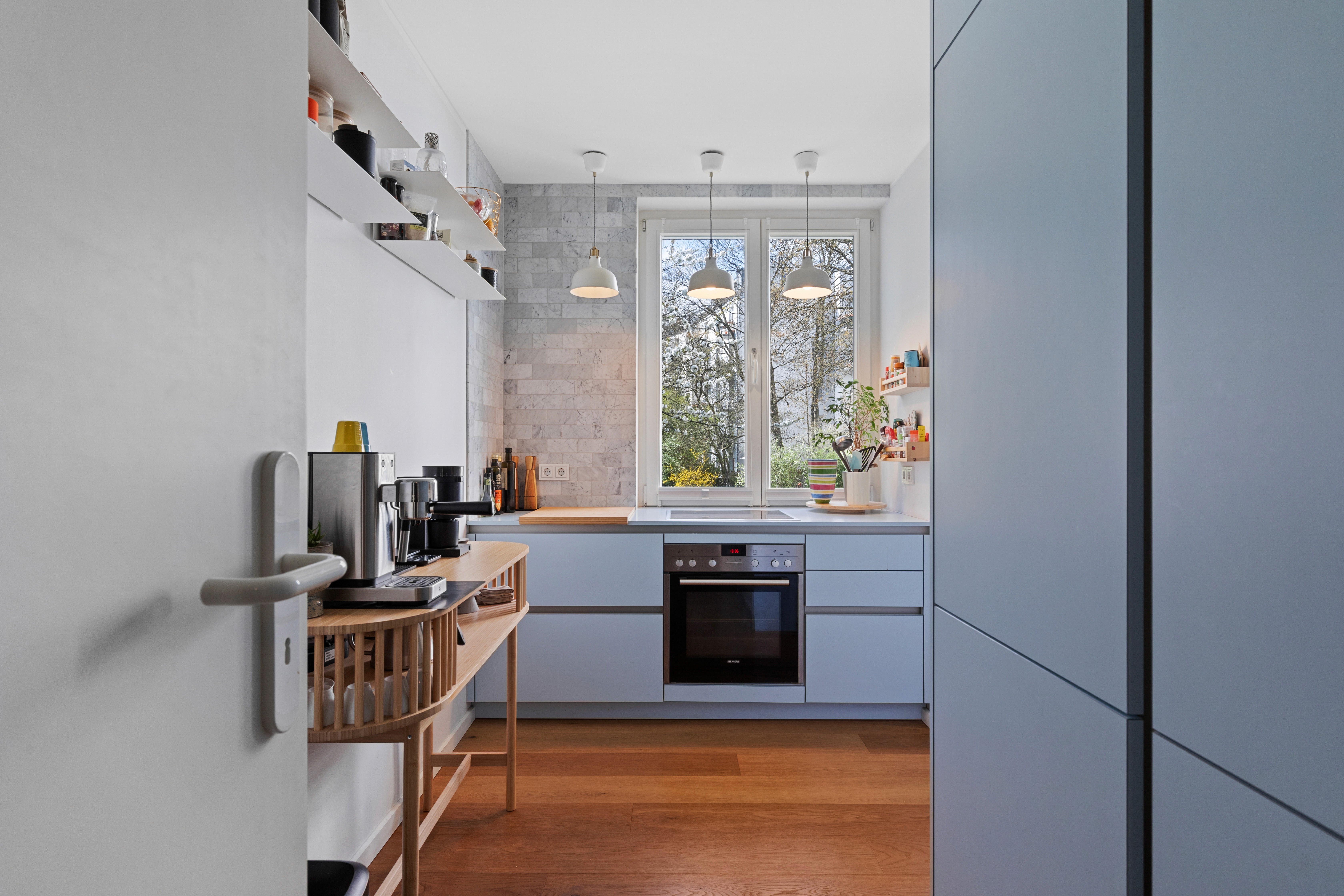 Das Haus im Allgemeinen aber insbesondere die Wohnung wurden 2013 mit sehr viel Liebe zum Detail kernsaniert. Trotz des Baujahres besticht die Wohnung mit einem sehr modernen Schnitt und zeitlosen Materialien.